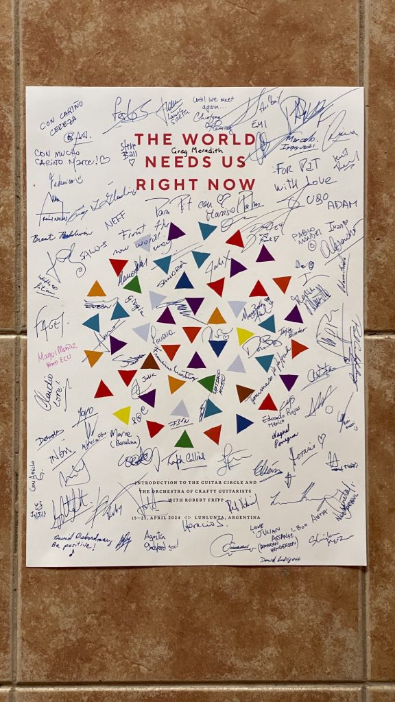 Robert Fripp & The Orchestra Of Crafty Guitarists will perform publicly on Saturday 20th, April 2024, at “Nuestra Señora del Tránsito” Church (next to the course’s facility).