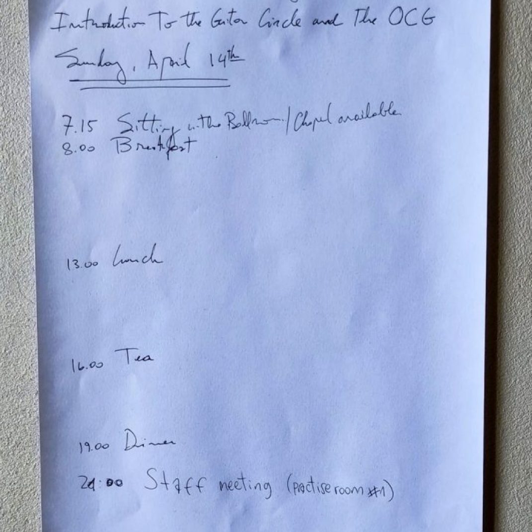 For those attending as guitarists, work will be on acoustic guitars in the New Standard Tuning – CGDAEG. Guitar meetings / workshops will be in groups of all sizes, including individual meetings with the Guitar Buddies.